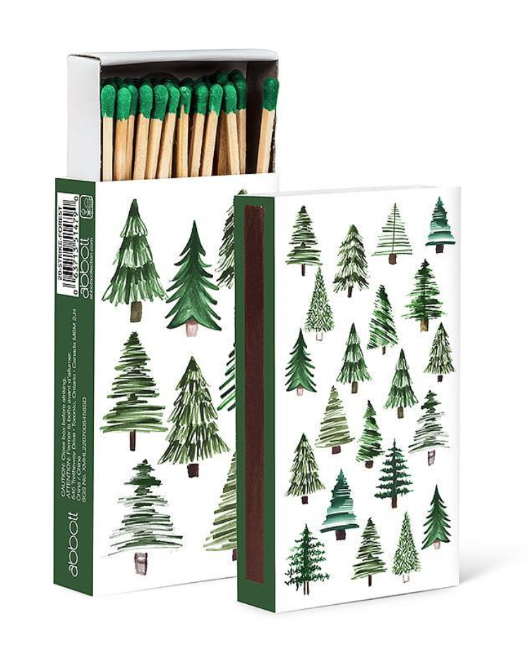 This Abbott Exclusive Matchbox from Simple Trees offers a distinguished design featuring graphic-style evergreens. With 45 wooden matchsticks, you can light BBQs, fireplaces, candles and more with ease.
