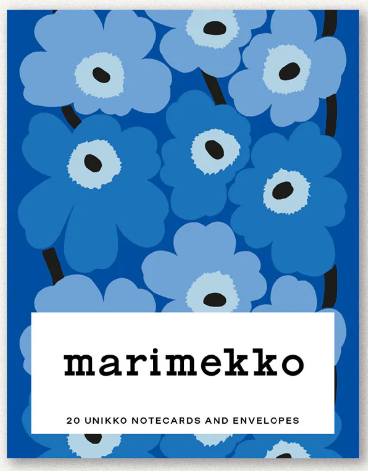 Bring Marimekko's legendary design to your correspondence with this stunning notecard set. Twenty blank cards showcase the beloved Unikko pattern in rich blue tones, each measuring 3.5" x 5.5" with coordinating envelopes. Featuring 10 unique designs (2 cards of each), they're versatile for any occasion—from gratitude notes to celebration greetings. Presented in a sophisticated keepsake box, this is stationery that makes an impression.
