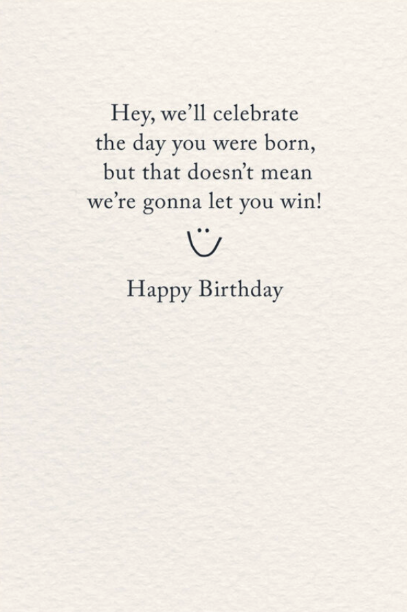 Hey, we’ll celebratethe day you were born,but that doesn’t meanwe’re gonna let you win!Happy Birthday