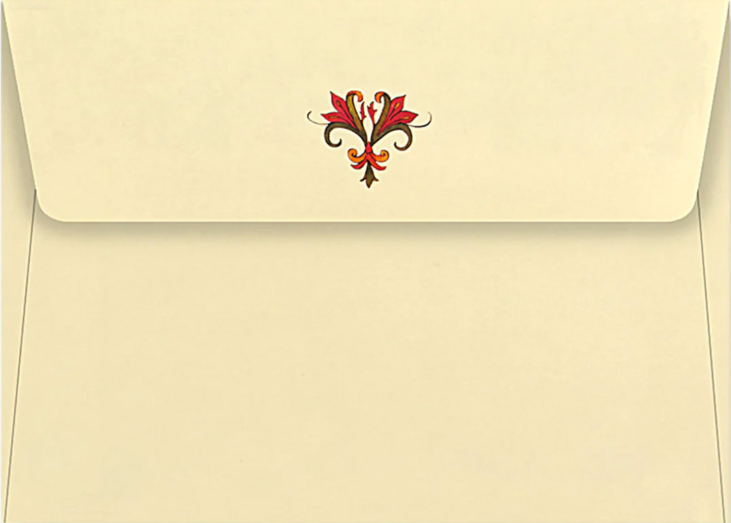 • A detail of the design is replicated on the envelope flaps.
