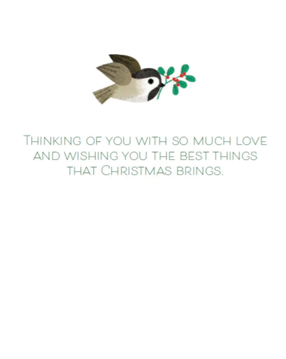 Inside Text: Thinking of you with so much love and wishing you the best things that Christmas brings.