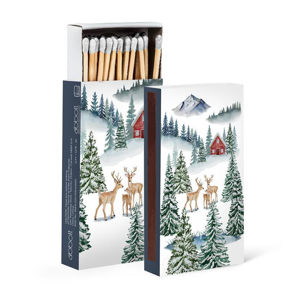 Enhance your fireplace or chiminea with the vibrant charm of our Winter Forest Matches. This Abbott Exclusive features a brightly colored design and contains 45 wooden matches with matching colored tips, making it an excellent complement to tealights and candles.