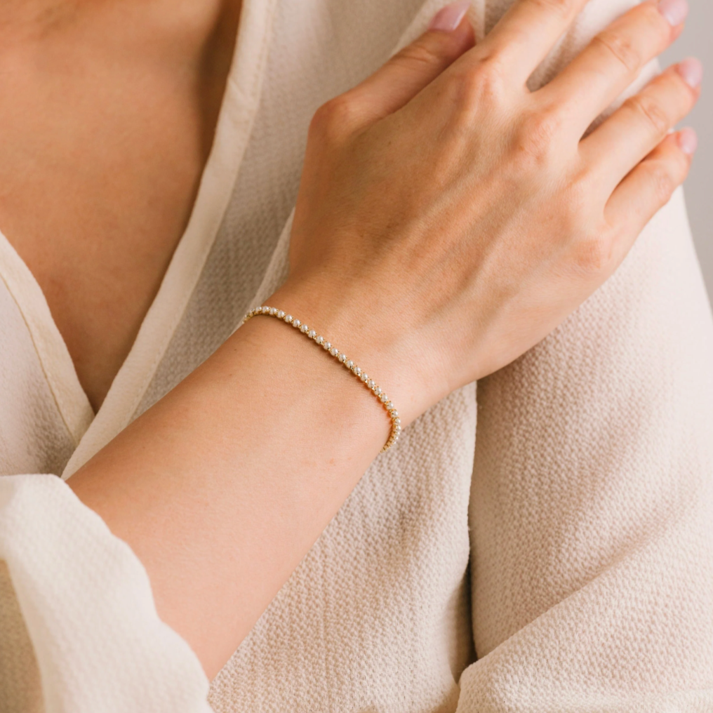 Minimal yet sophisticated, this tennis bracelet has got game.