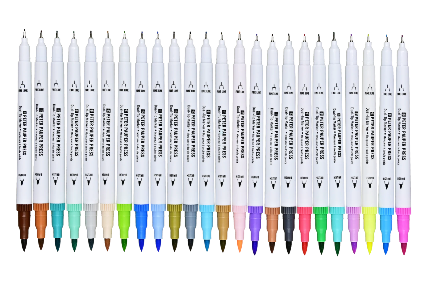 - Each marker has 2 tips: Fine (0.4 mm), for intricate detail work and underlining; and Brush, for broad area coverage and highlighting.