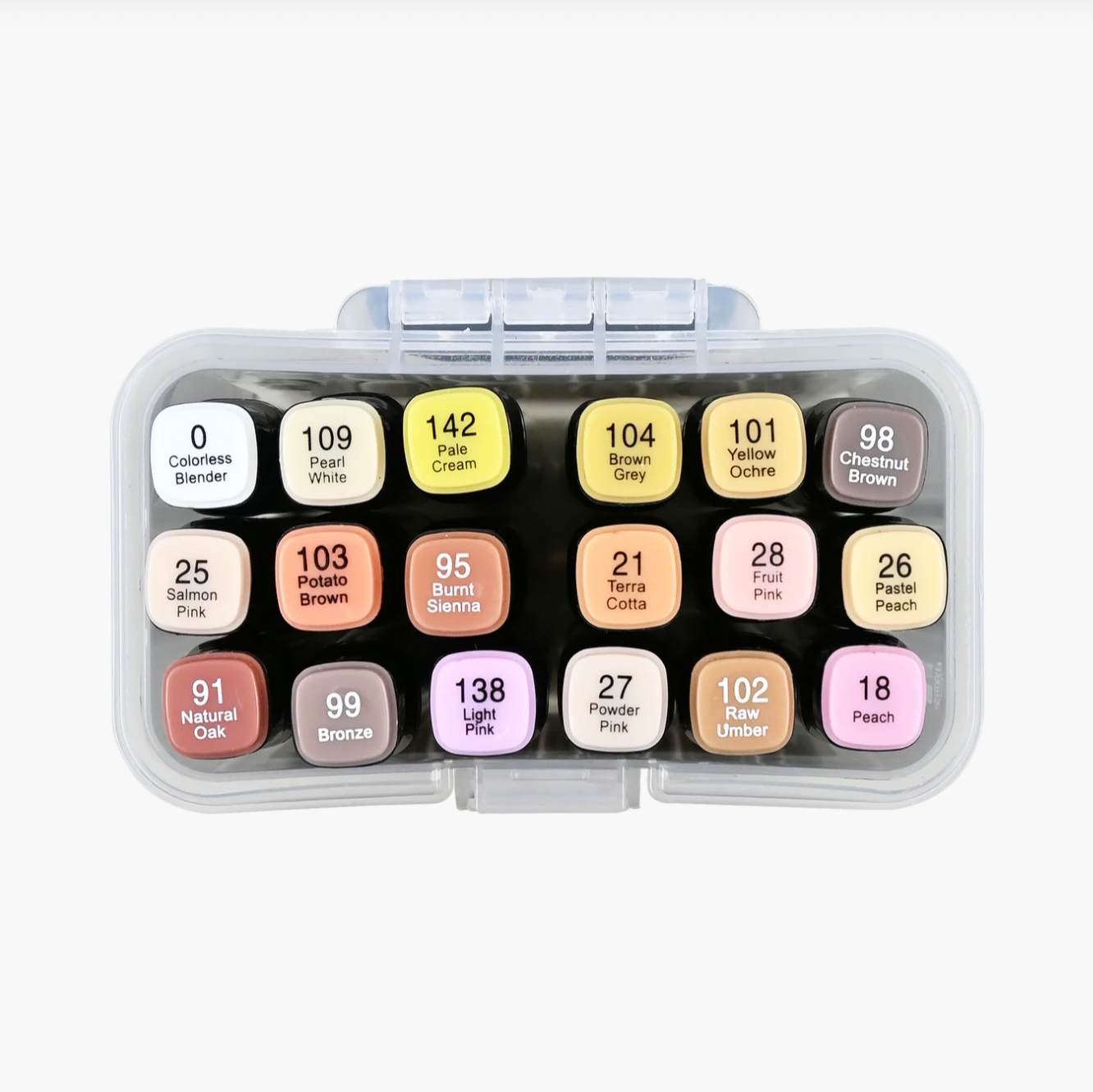 - Versatile set of skin-tone alcohol markers comes with 18 colors!