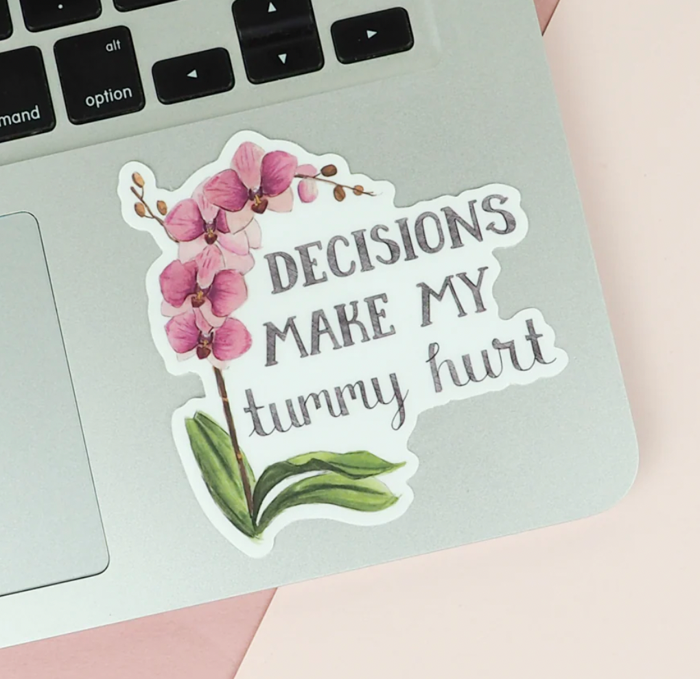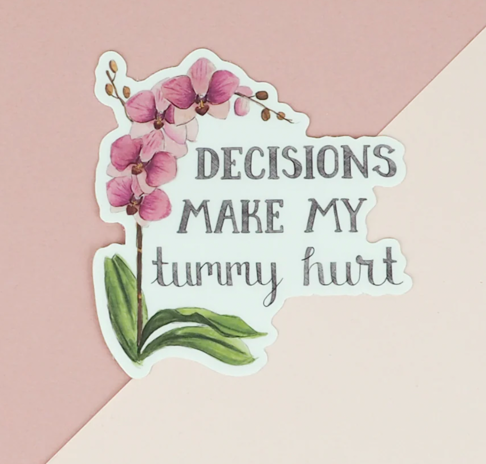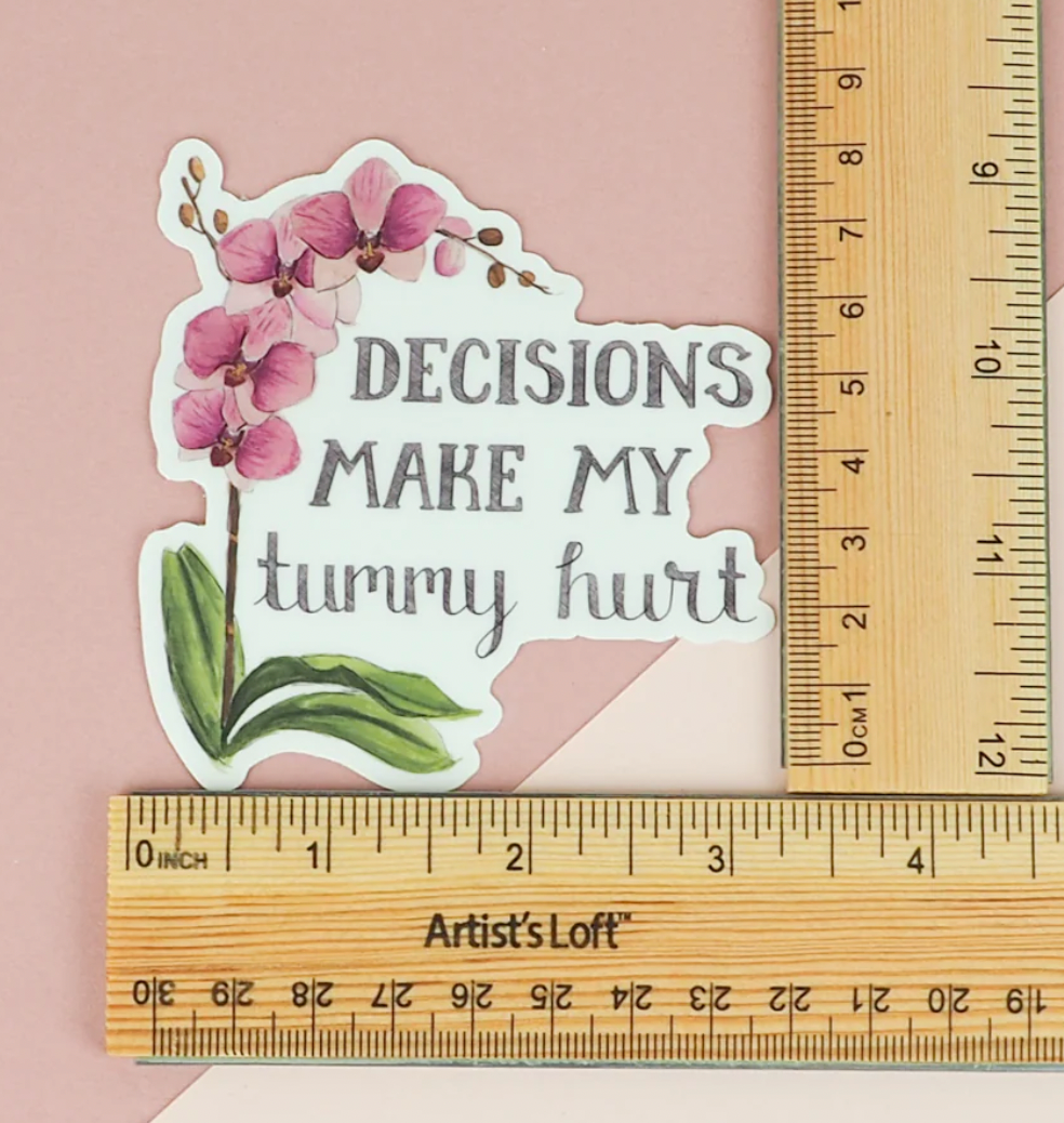 Decisions Make My Tummy Hurt Vinyl Sticker