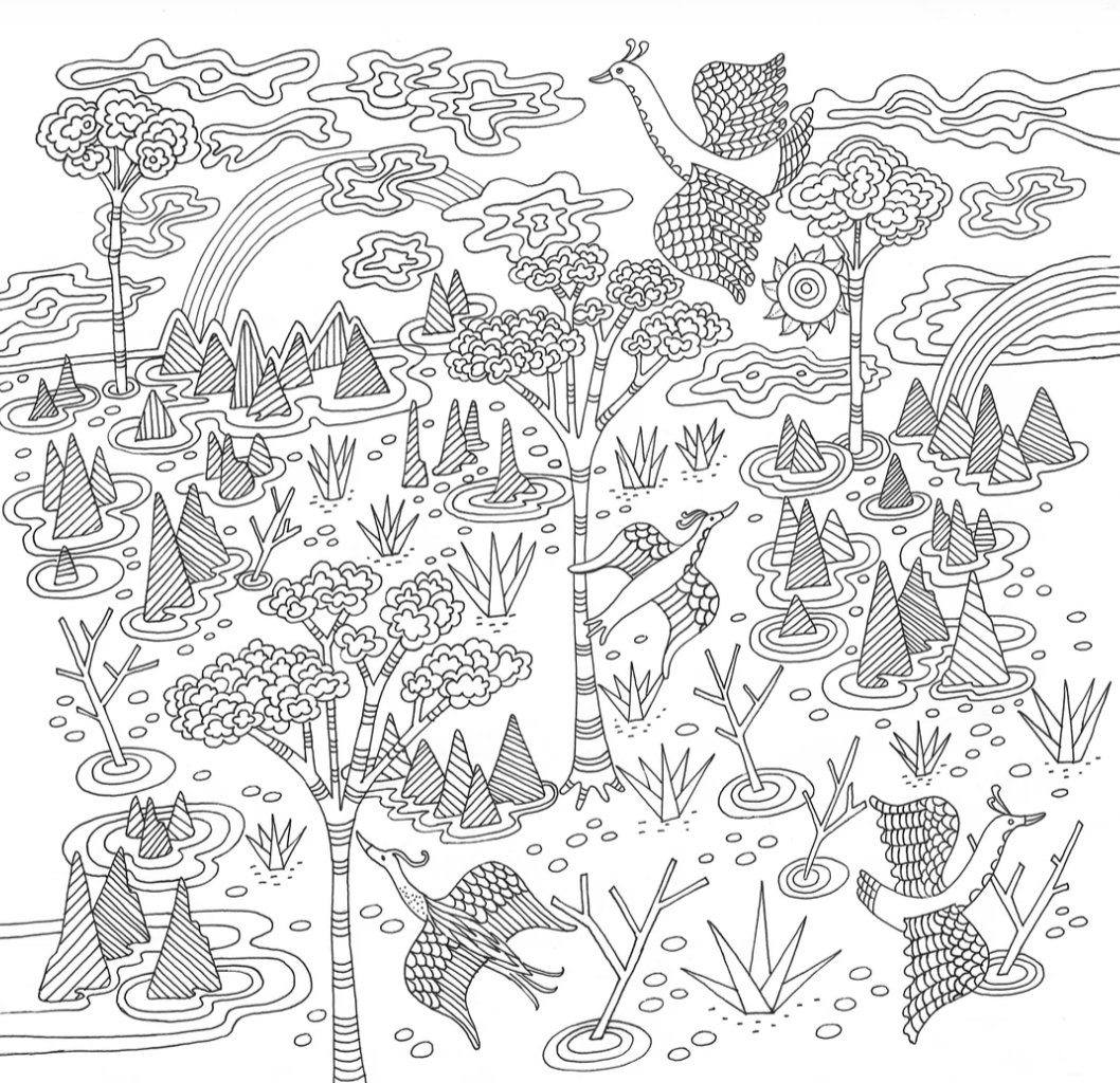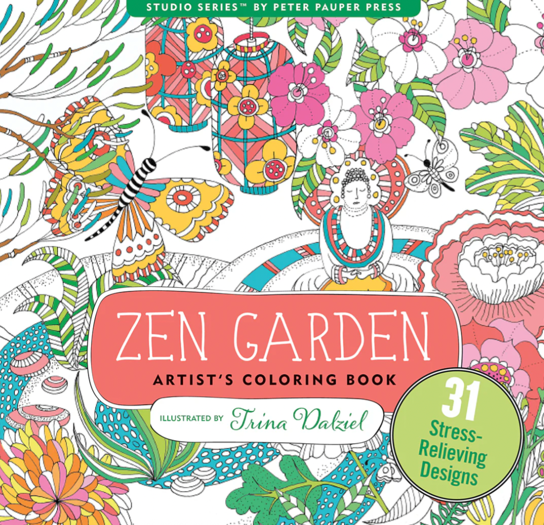 Free your mind and ease into the blissful calm of colouring birds, butterflies, pools, pagodas, and more in a serene garden setting.
