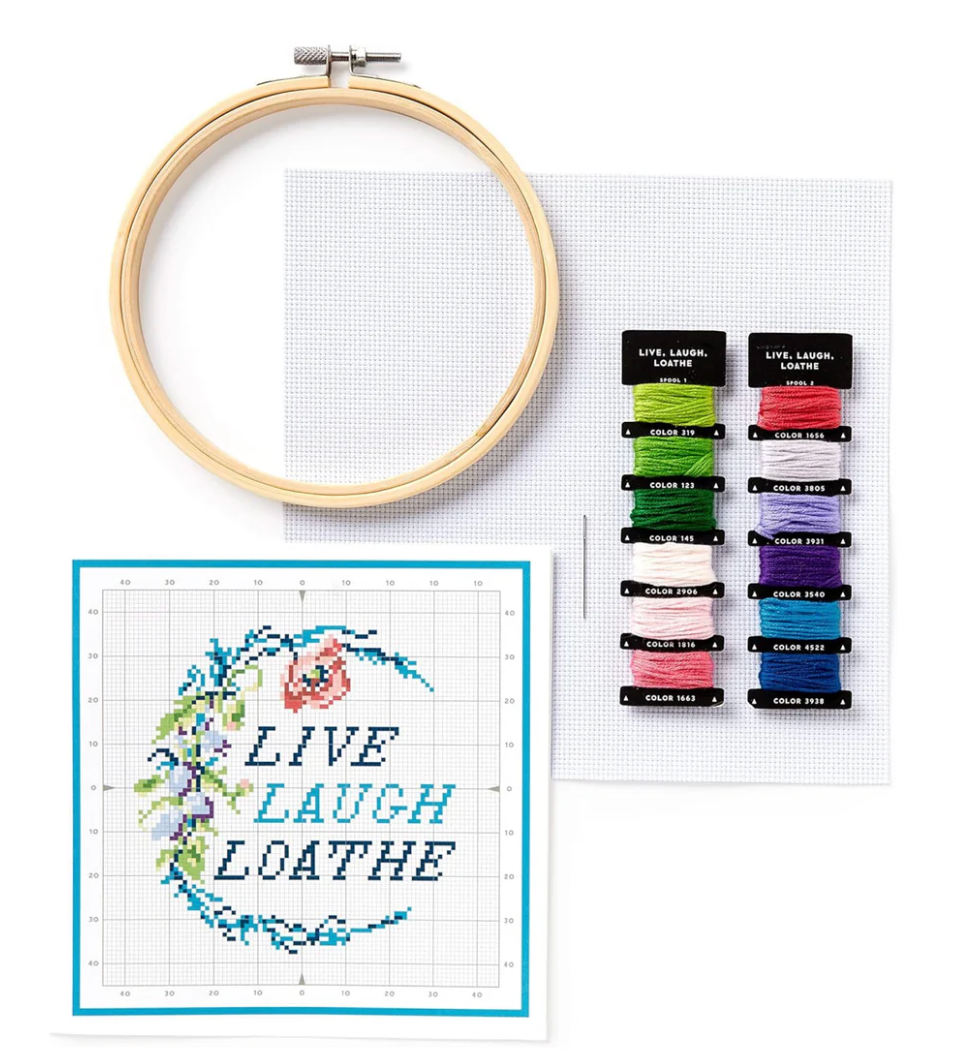 While everyone else is blessing-their-mess, you can stitch out a little dose of reality. This cross-stitch-kit-for-the-rest-of-us by Brass Monkey includes everything you need (besides the patience): an embroidery hoop, needle, Aida cloth, and all the floss you could possibly want. That's what they call the thread. . .you'll have to provide your own dental care supplies.