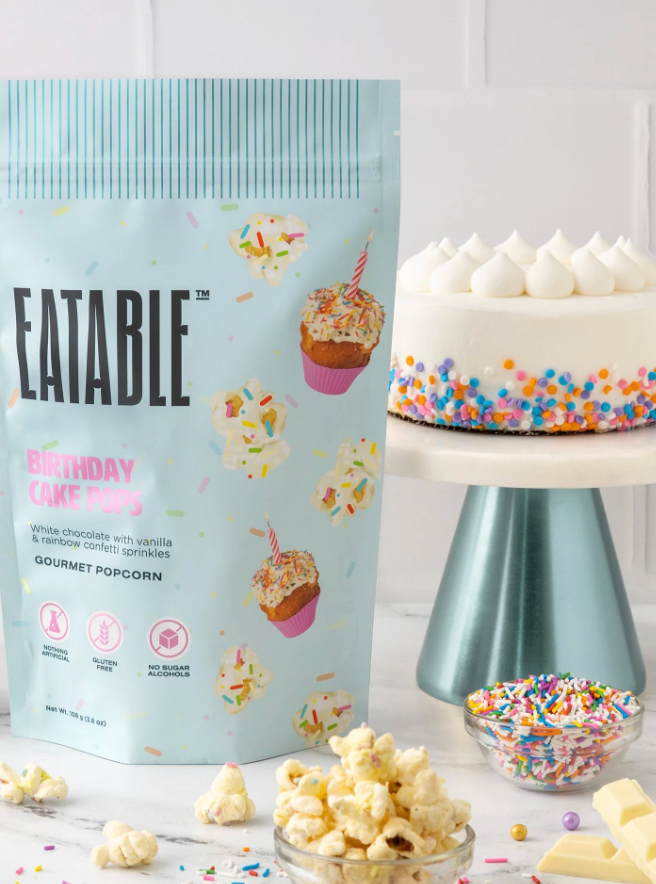Snack like it's your birthday any day and keep the party POPPIN' with Birthday Cake Pops! Non-GMO whole grain popcorn kernels are kettle popped and fully covered in premium white chocolate and all-natural rainbow confetti sprinkles, bursting with flavour and fun!