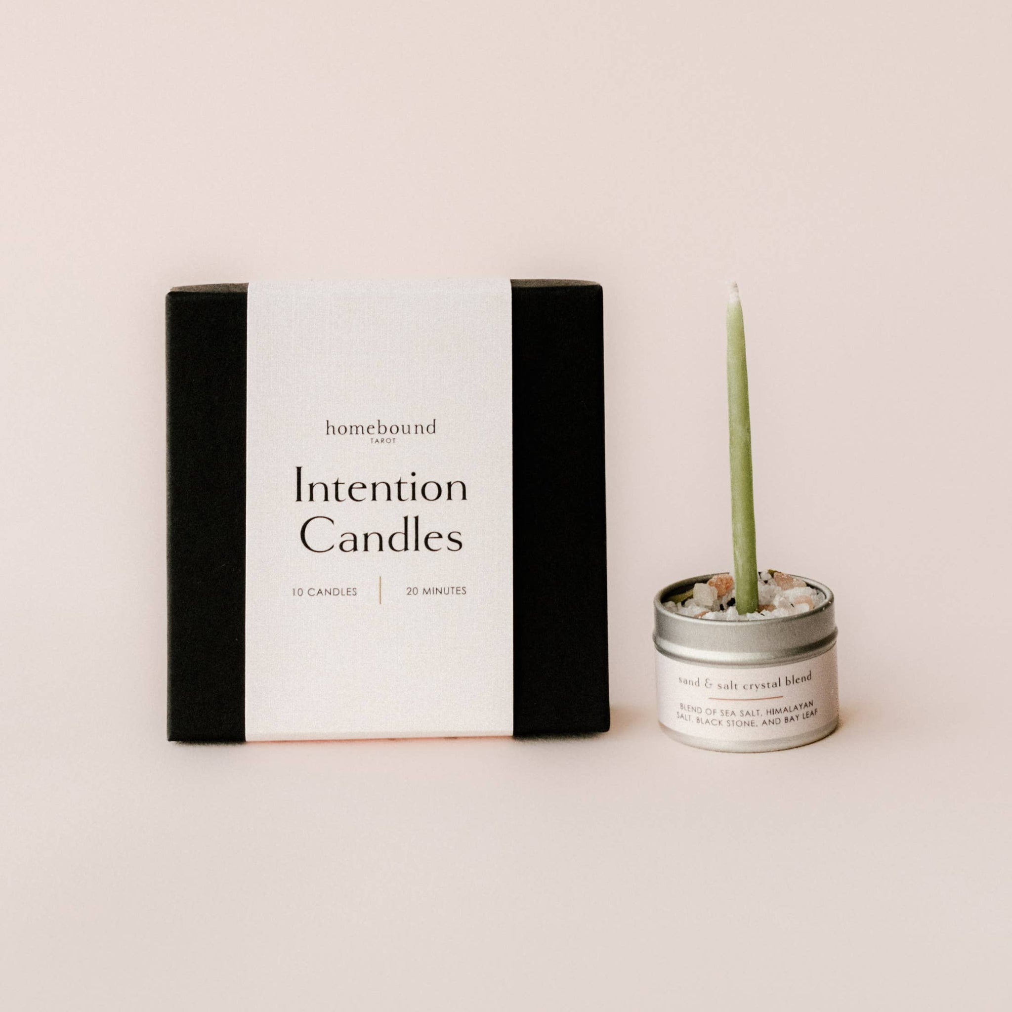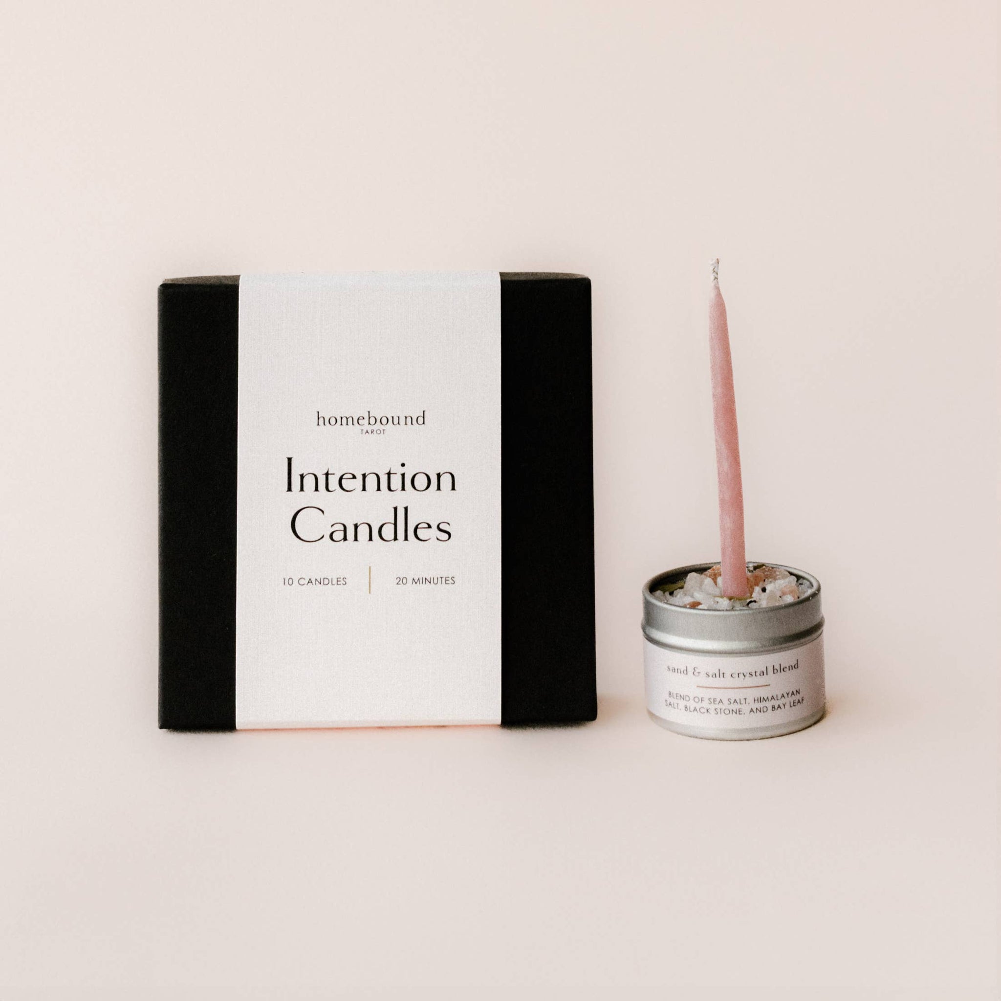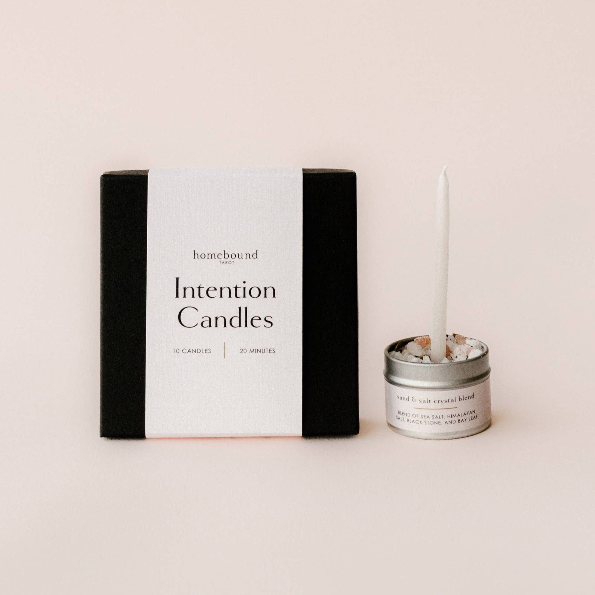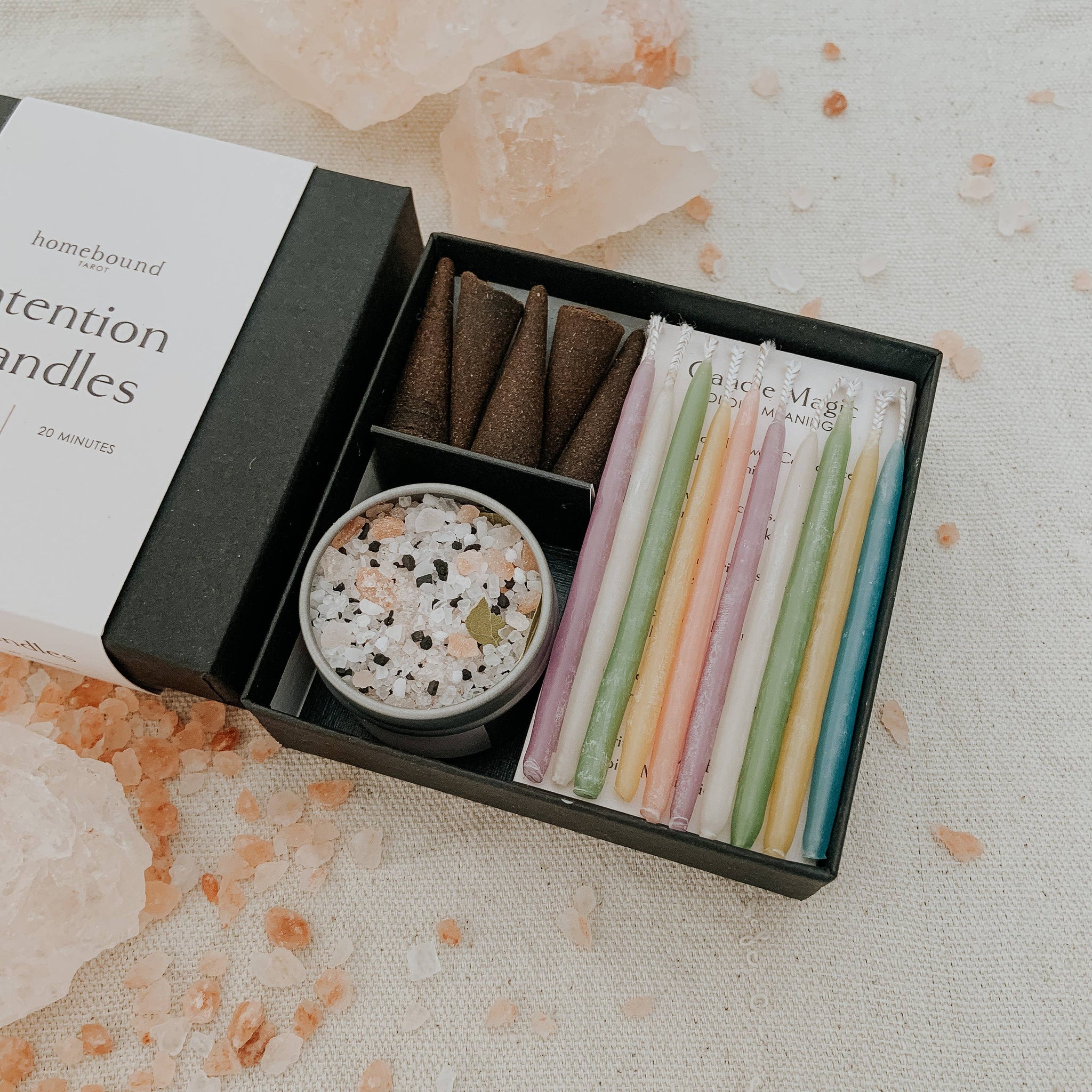 10 candles, a salt pot to safely burn your candles in and 5 incense cones (vanilla or frankincense scent) to further elevate your moment.
