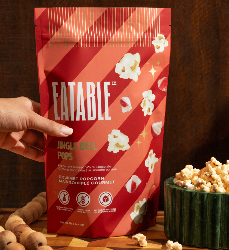 EATABLE's original bestselling holiday flavour release! Belgian white chocolate-covered kettle corn sprinkled with candy cane and peppermint-infused sugar crystals that literally POP in your mouth. A decadent treat for carefree mornings, and gatherings around the brunch table with your loved ones during the festive season.