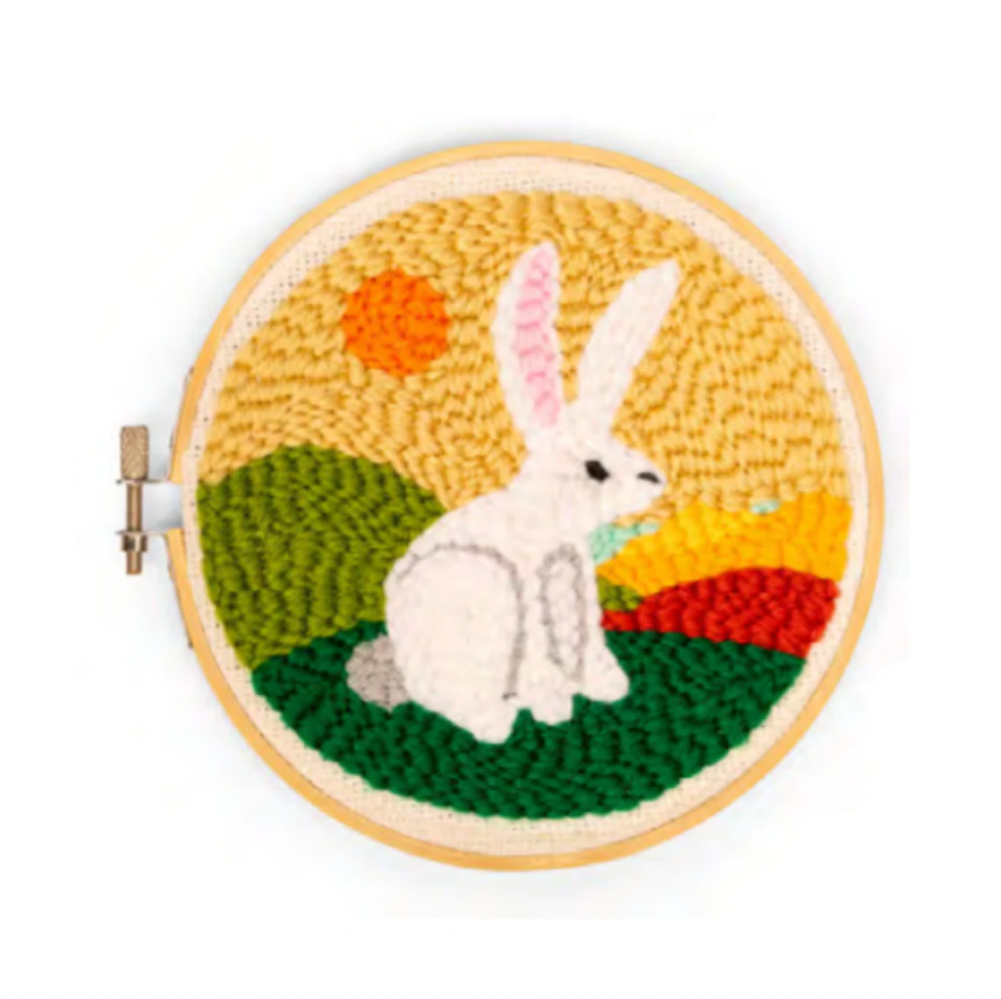 Expand your skills with the Hare Punch Needle Kit. This kit includes all the necessary materials such as an adjustable bamboo hoop, punch needle, needle threader, cotton cloth with printed template, and an abundance of yarn. Perfect for beginners wanting to learn the traditional handicraft of punch needle or rug hooking and create a miniature tapestry.