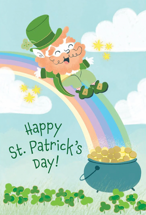 St. Patricks Day - Leprechaun Sliding Down a Rainbow