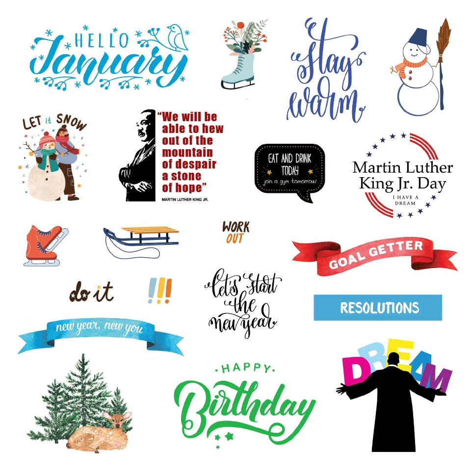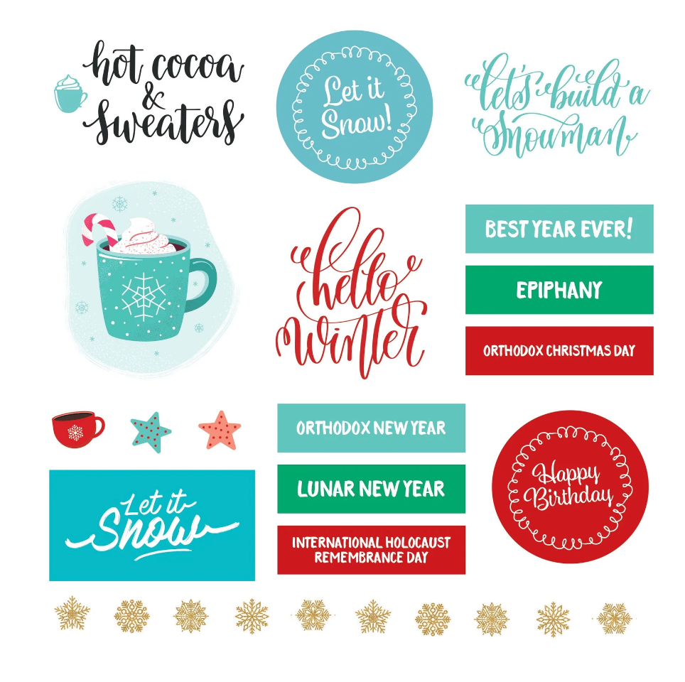 - Sticker subjects include holidays, events, observances, and loads of other fun icons for the whole year through!