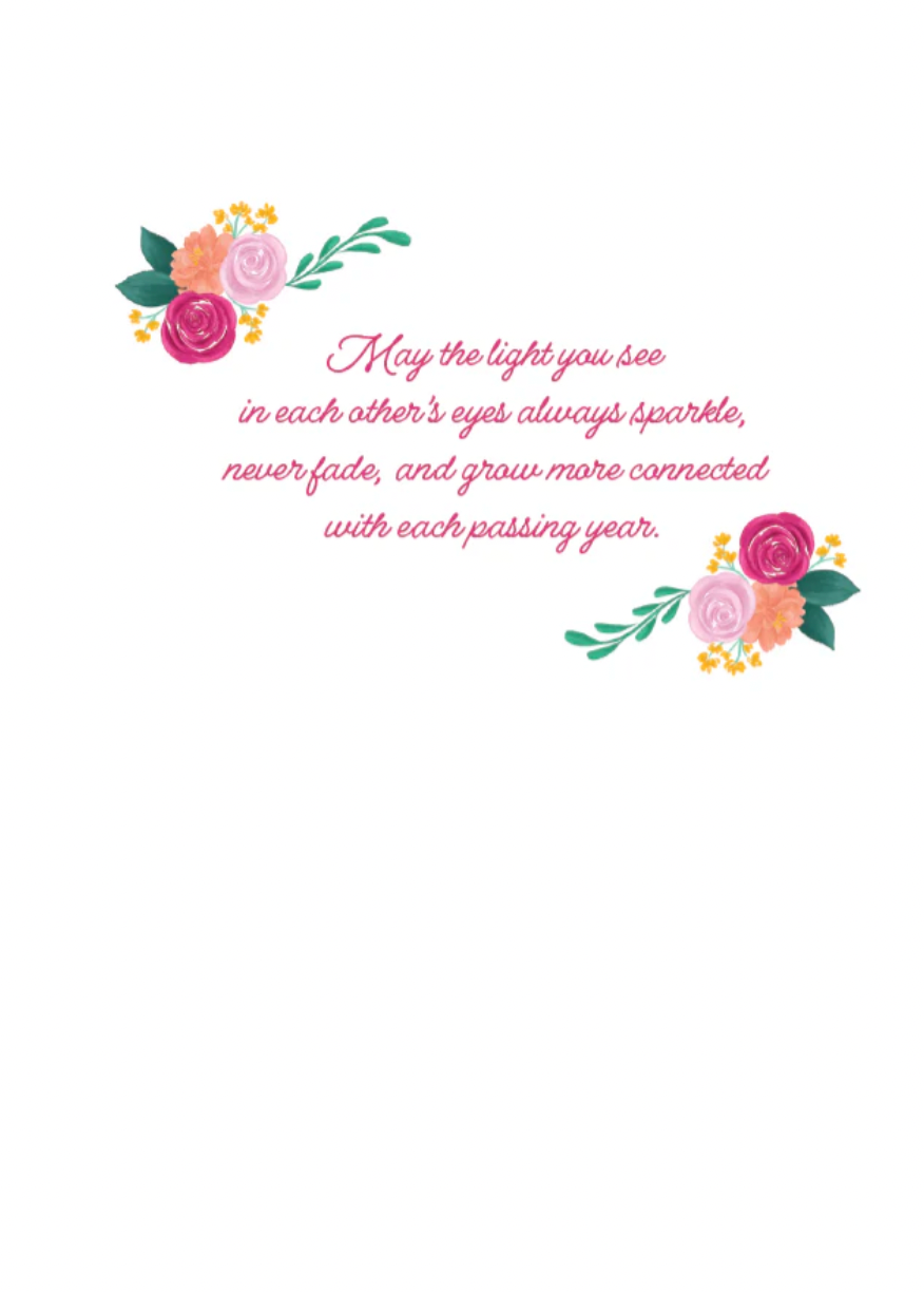 Inside message: May the light you see in each other’s eyes always sparkle, never fade, and grow more connected with each passing year.