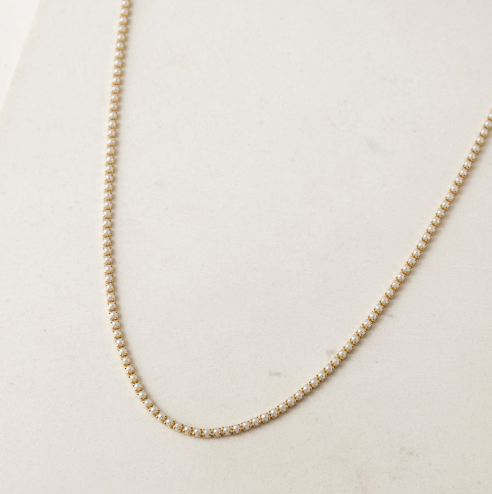 Lover's Tempo Tennis Pearl Necklace: Gold