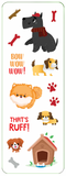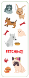 - Cute puppy images \u2013 Corgis, Dalmatians, Beagles, and more -- are combined with related icons, such as pawprints, bones, a doghouse, and phrases, such as ''What's up, Pup?'' and ''Fetching!''