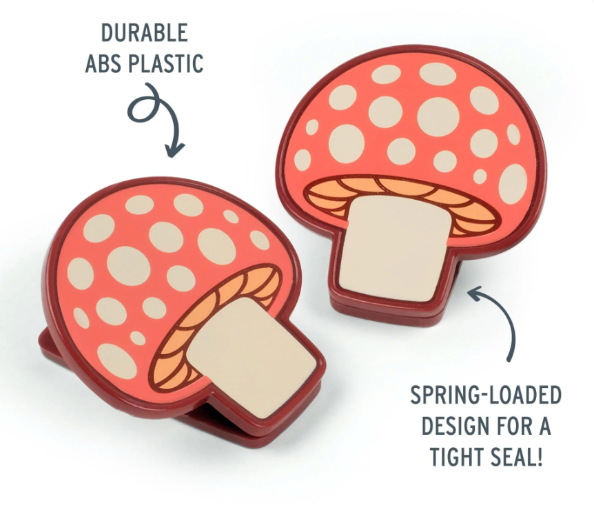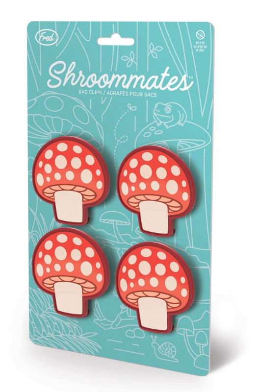 Experience the fun of finding functional fungi with Fred's Shroommates bag clips! Crafted with sturdy ABS plastic, each 2.2"x2.2"x1.4" clip works to preserve the freshness of your snacks. Comes in a set of 4.