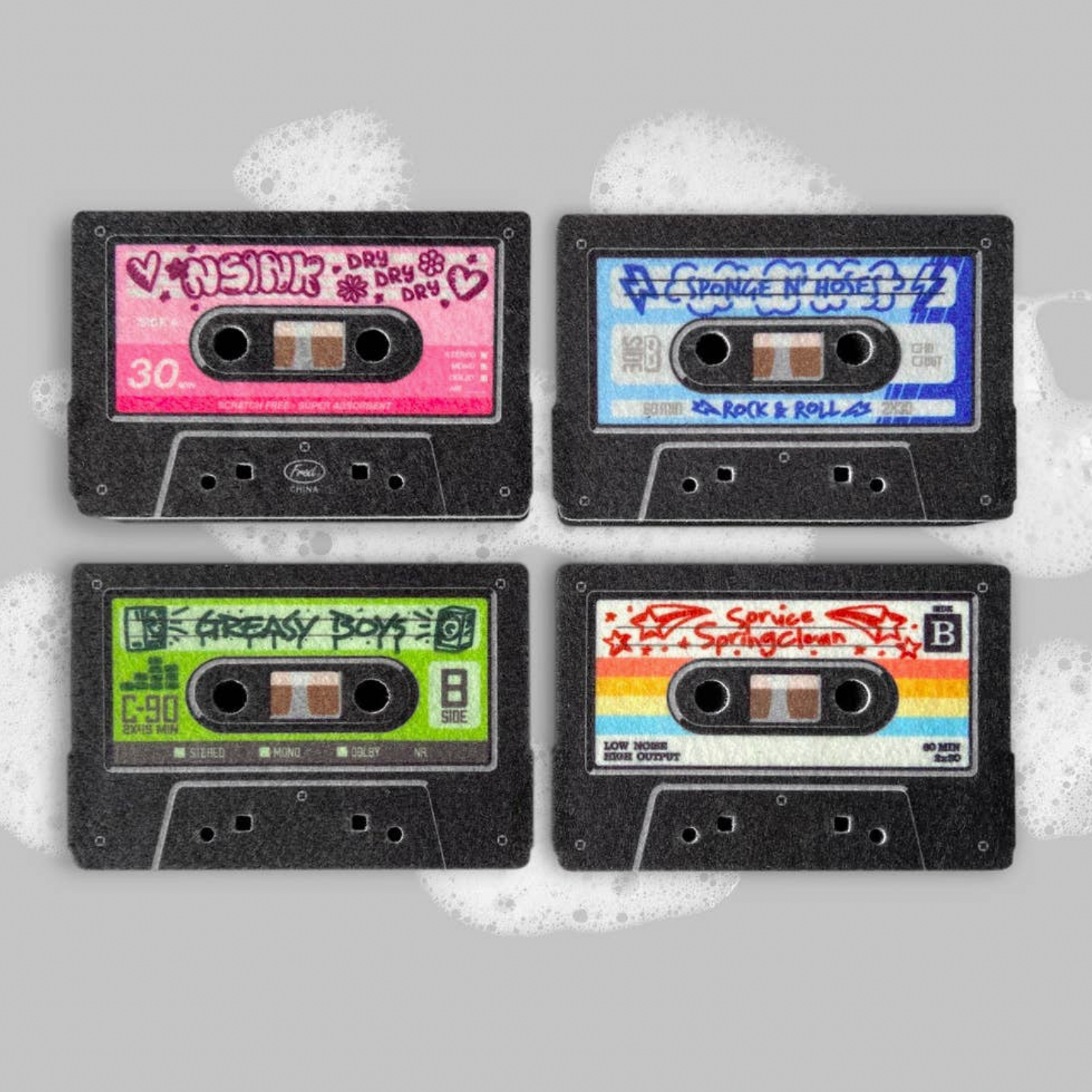 Don’t get wound up about doing the dishes! Fred’s MIX TAPES sponges will help you face the music. Each 3” x 4.5” sponge has three hard-working layers to get your dishes so fresh and so clean! Includes 4 quality sponges packed in retro boombox packaging.
